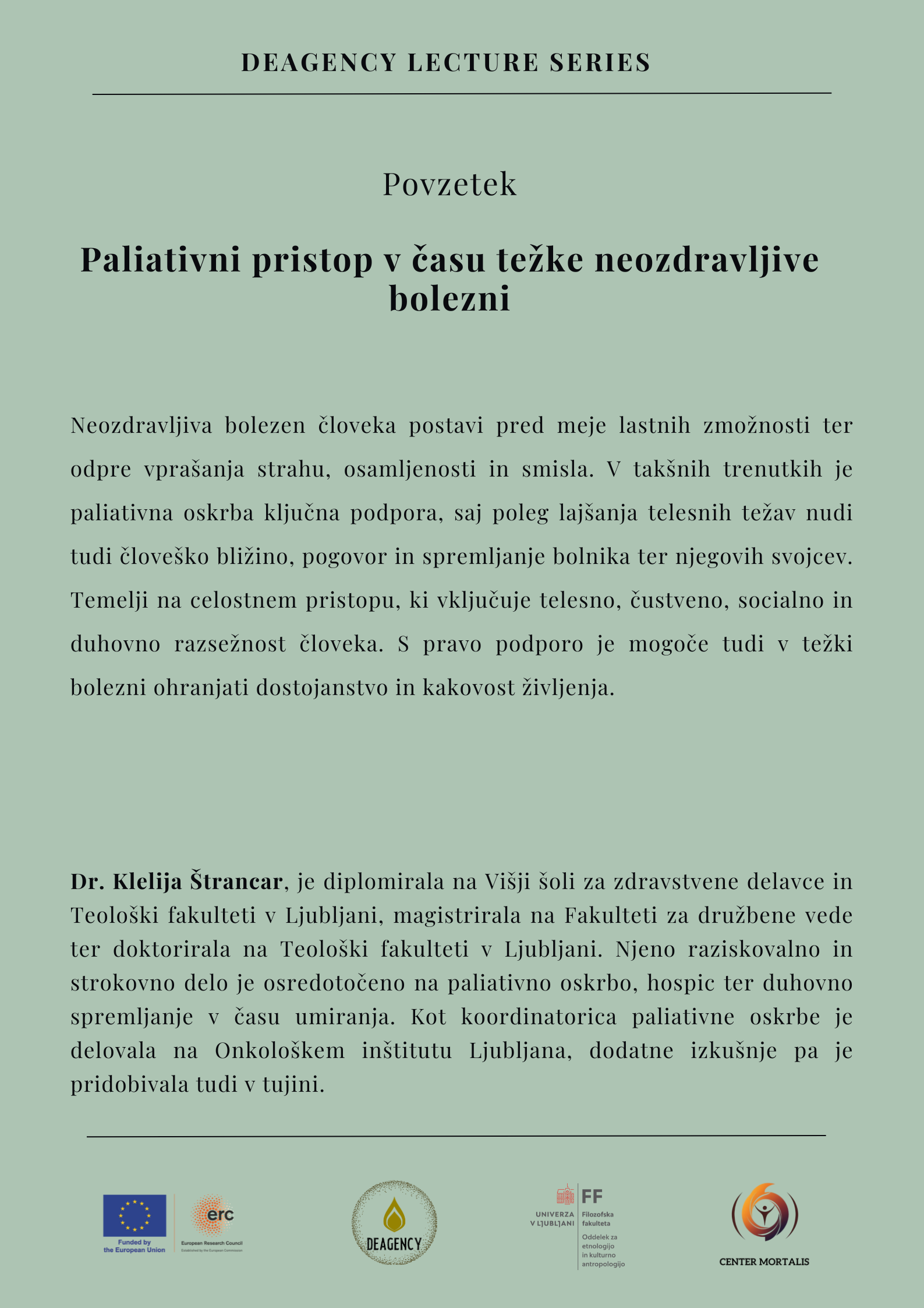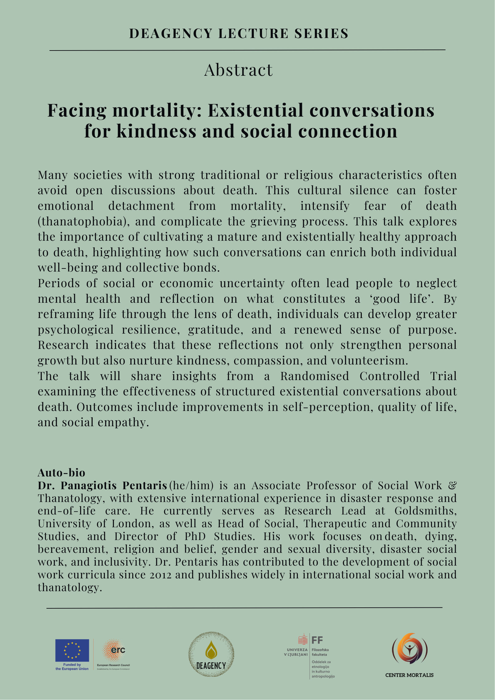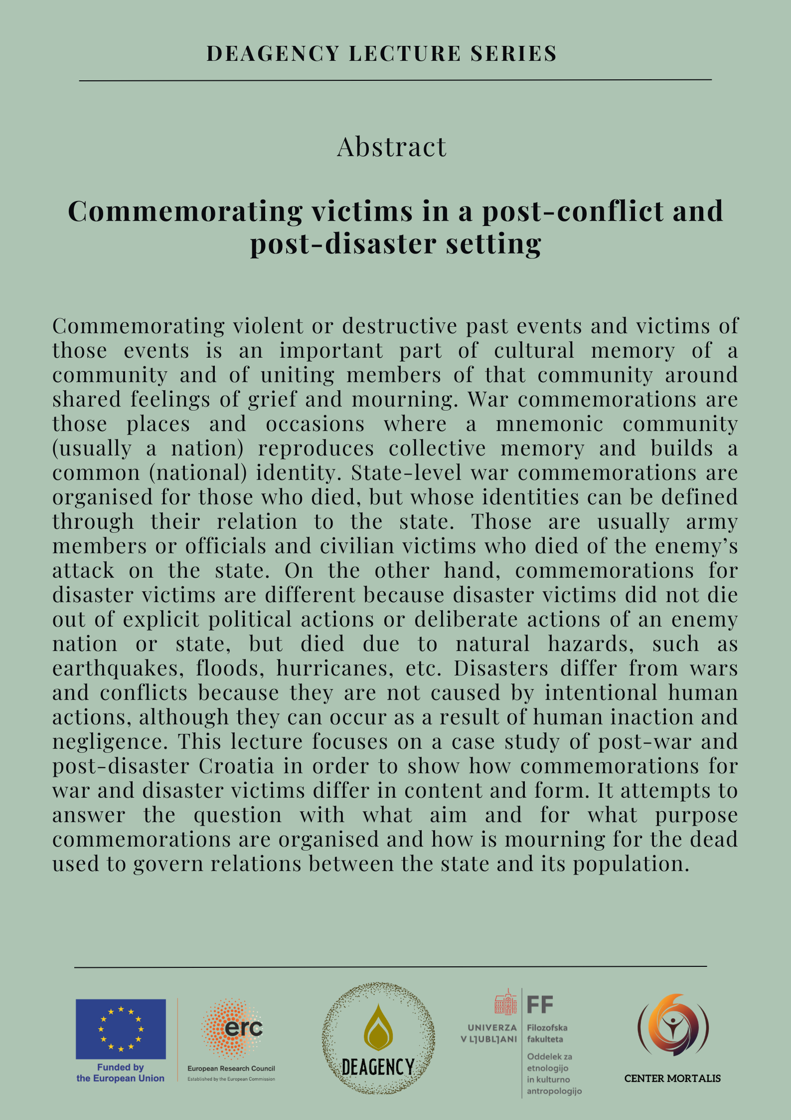 ERC project DEAGENCY (No 101095729) at the Department of Ethnology and Cultural Anthropology, Faculty of Arts, University of Ljubljana, Slovenia